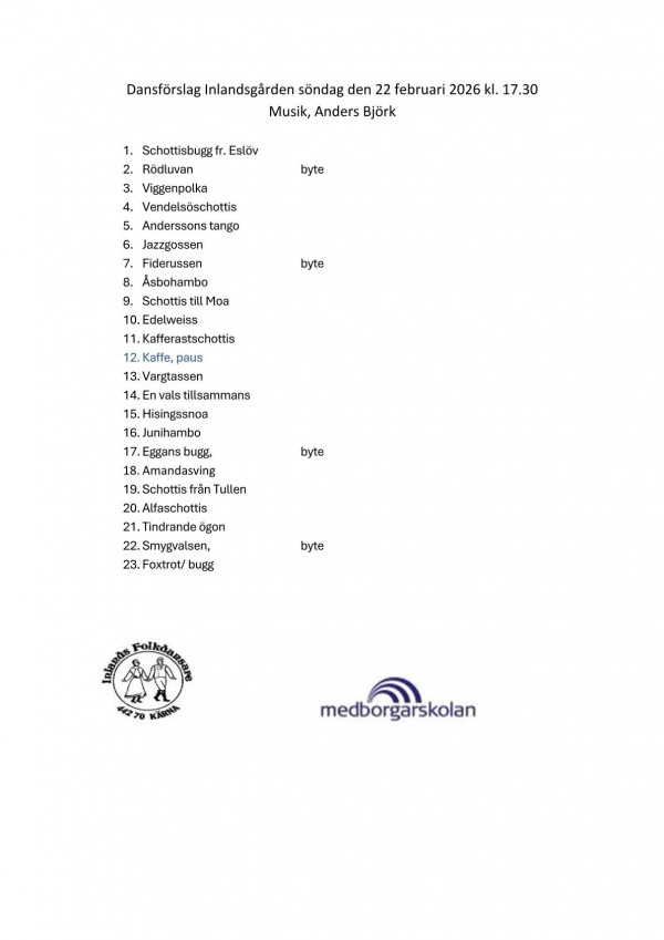 Vecka 8 dans nr. 4, Sön. 22 feb. Musik Anders Björk