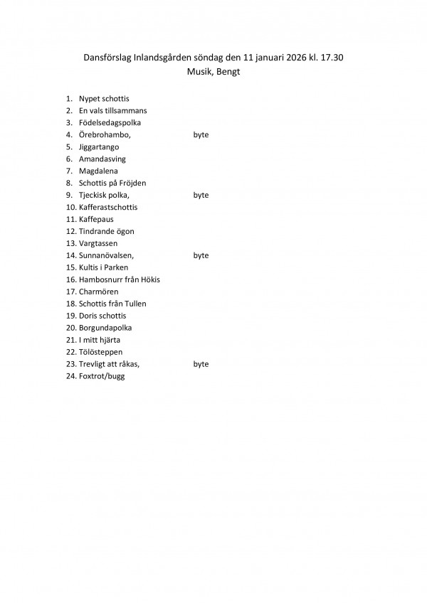 Vecka 4 dans nr. 2, Sön. 25 jan. Musik Lasse Tång